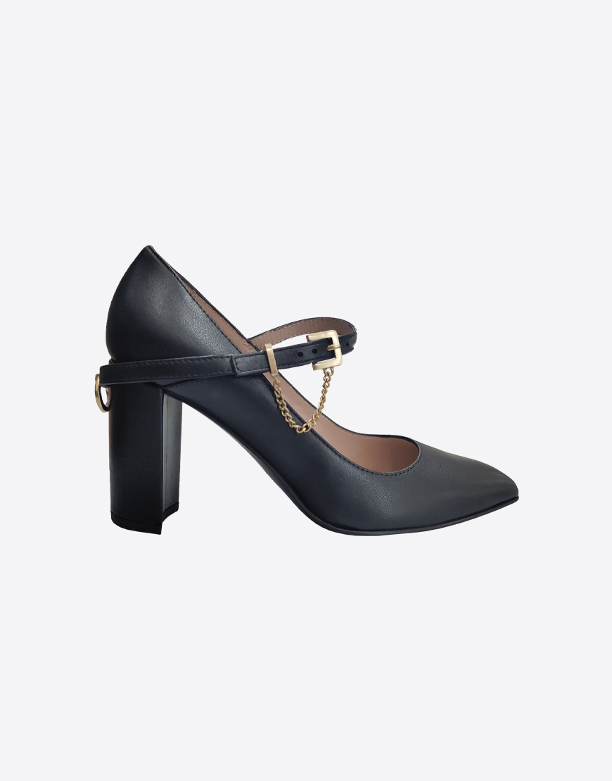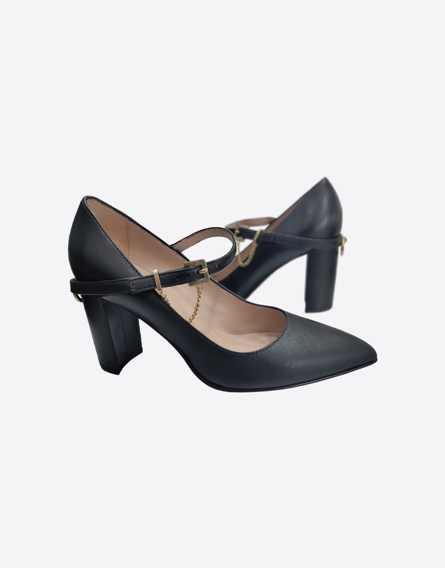 Nursace туфли в чёрной коже с ремешком на высоком устойчивом каблуке