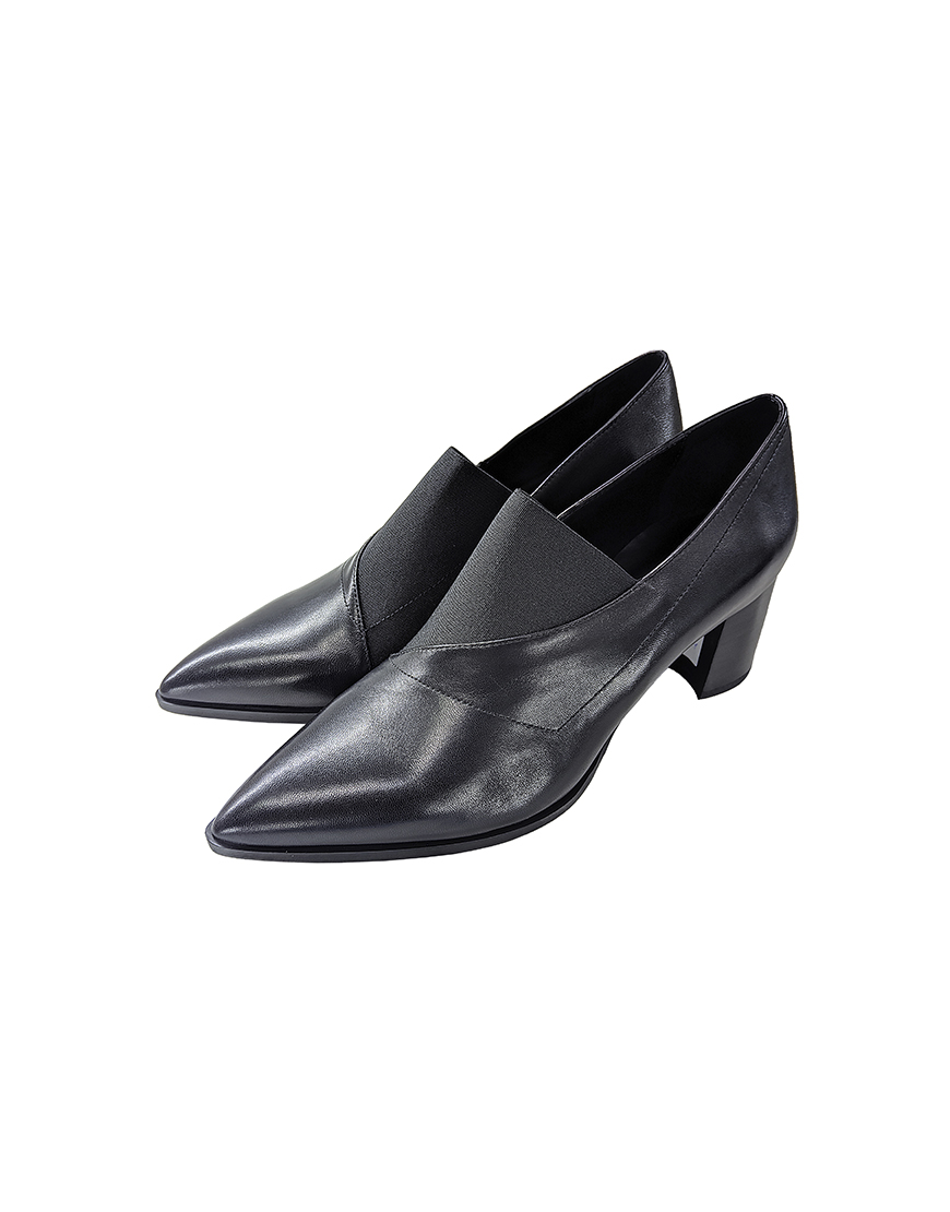 Nursace туфли в чёрной коже закрытые на среднем устойчивом каблуке