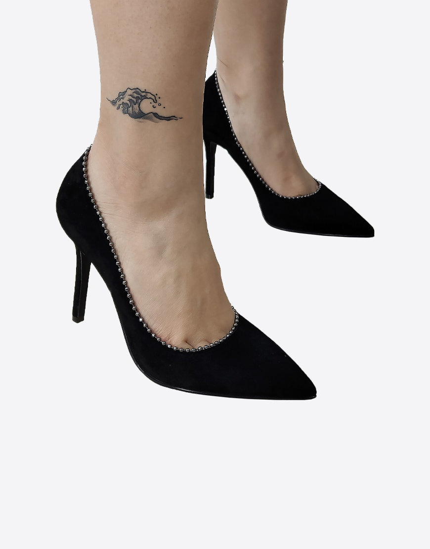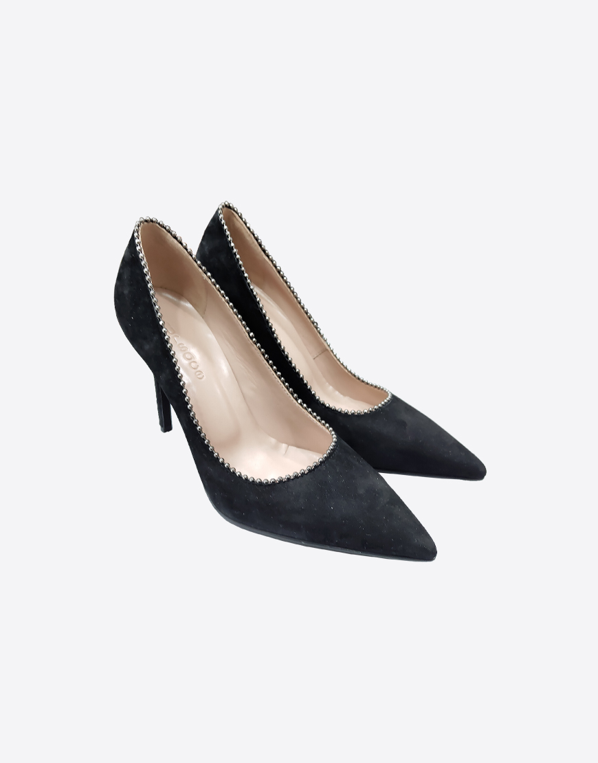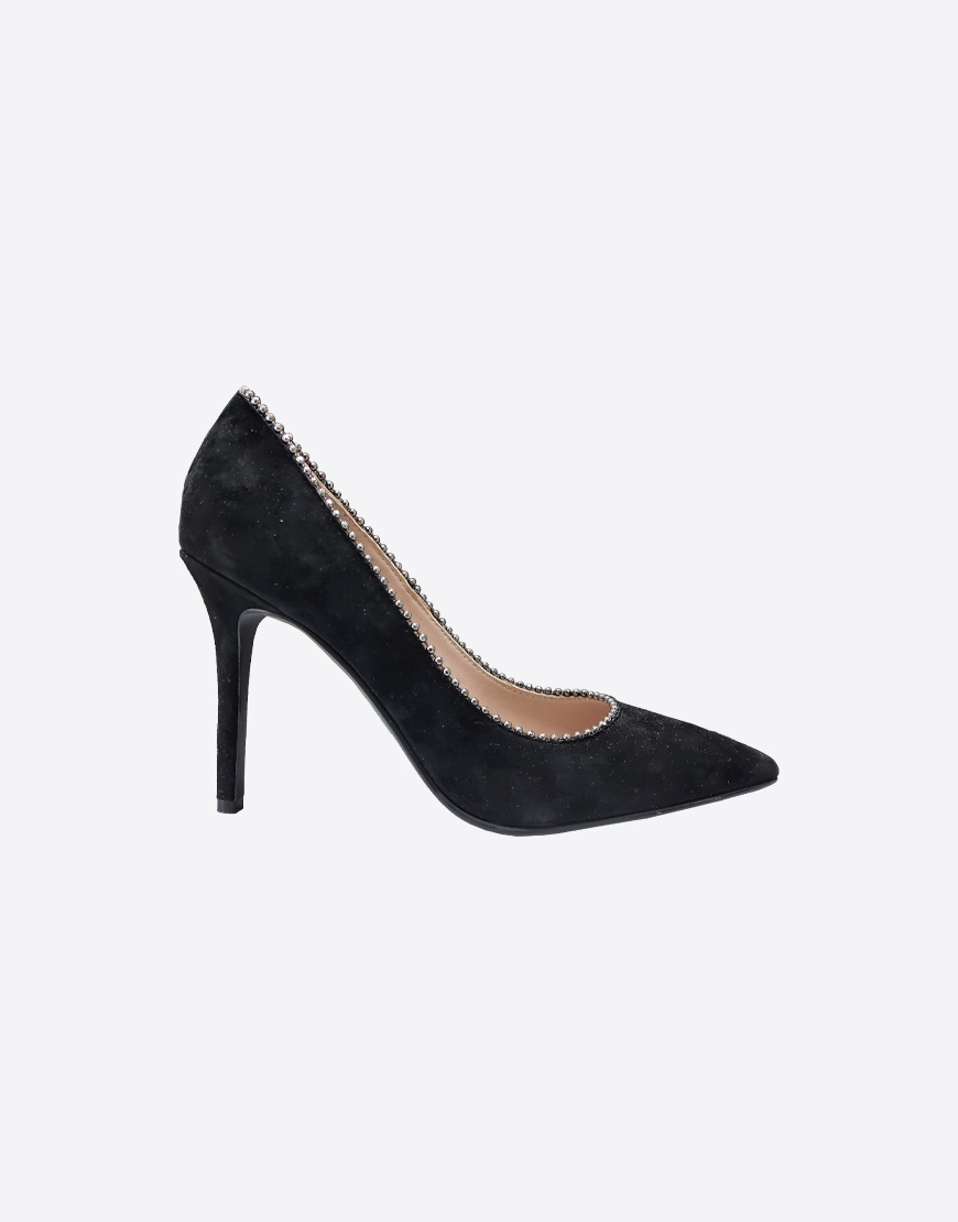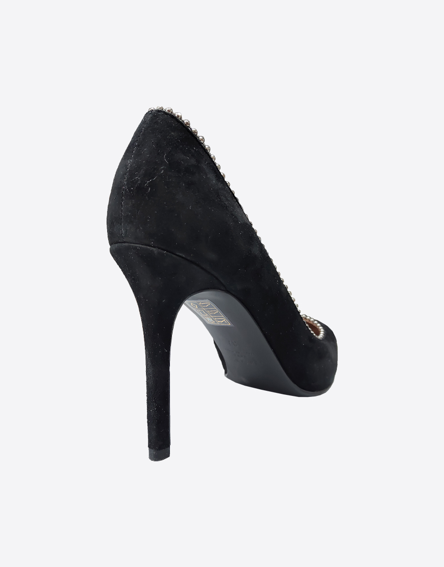 Nursace туфли в чёрной замше классические на высоком каблуке