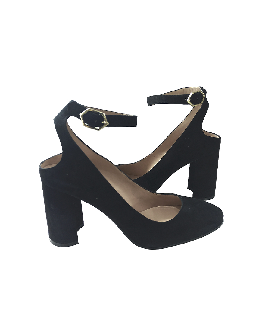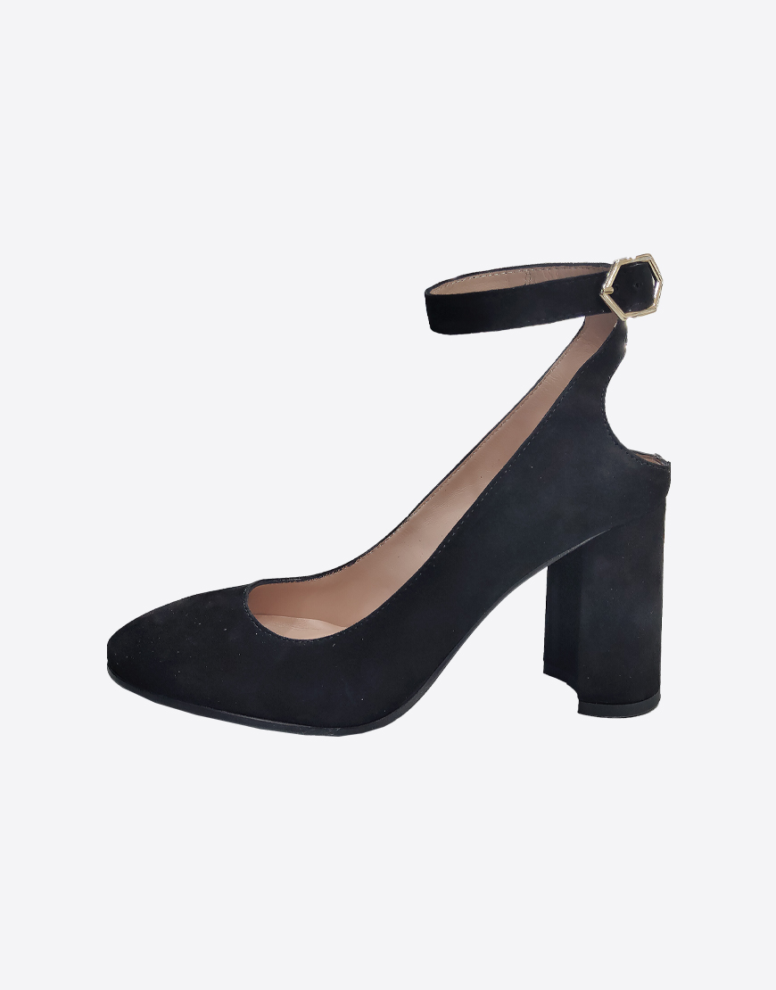 Nursace туфли в чёрной замше с открытой пяткой на высоком устойчивом каблуке