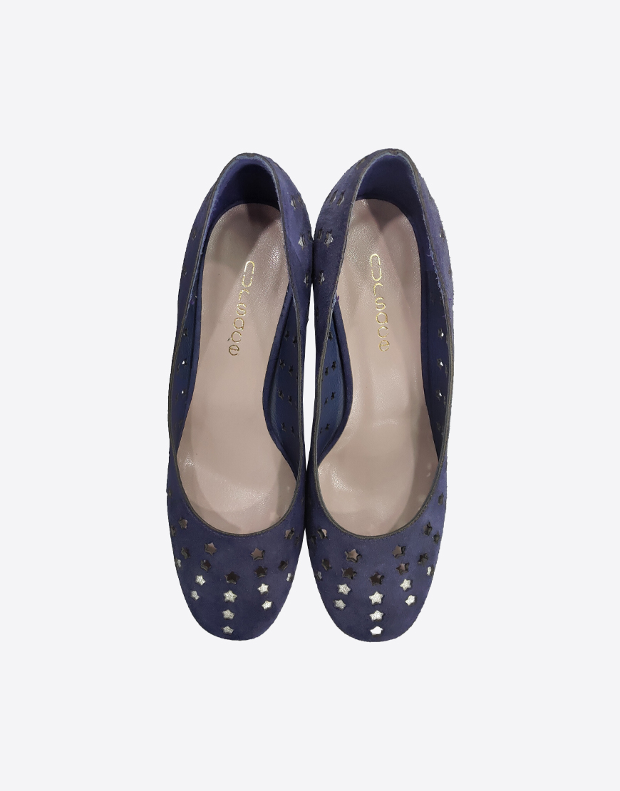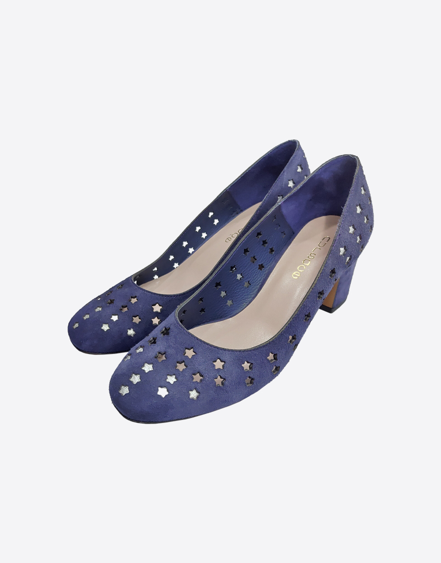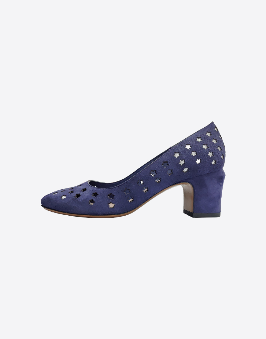 Nursace туфли в синей замше перфорированные на среднем устойчивом каблуке