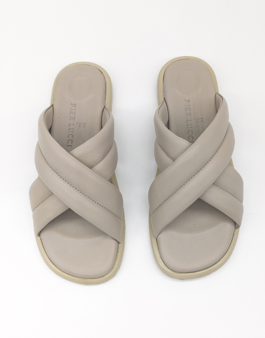 Pier Lucci шлёпки в коже цвета пудра + строчка