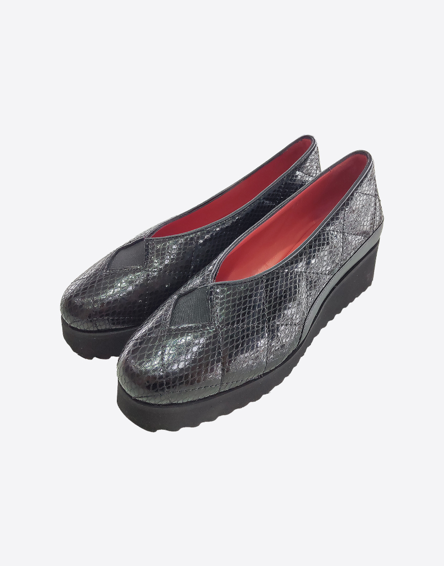Pier Lucci туфли чёрный питон стеганые на танкетке