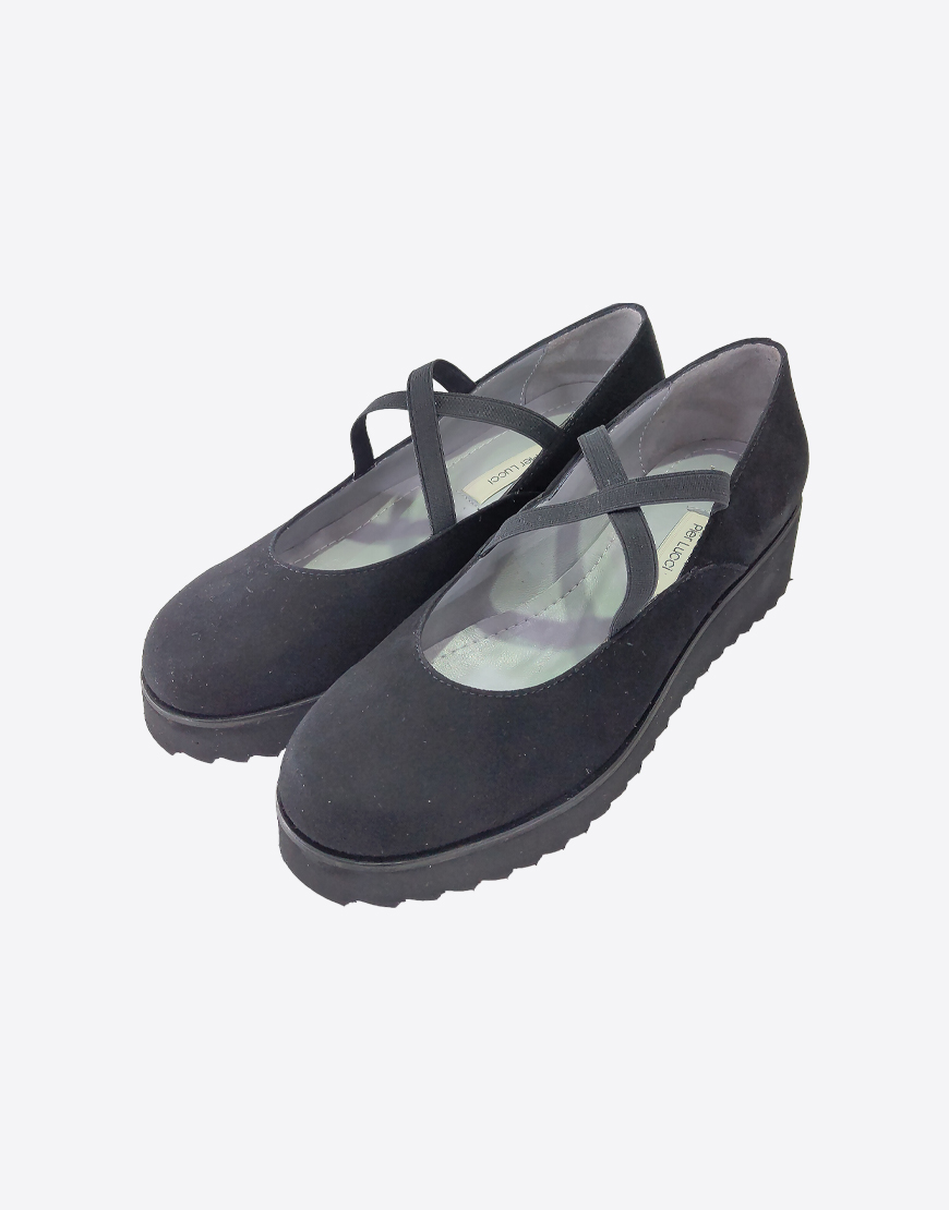Pier Lucci туфли замшевые чёрные с резинками Х на платформе