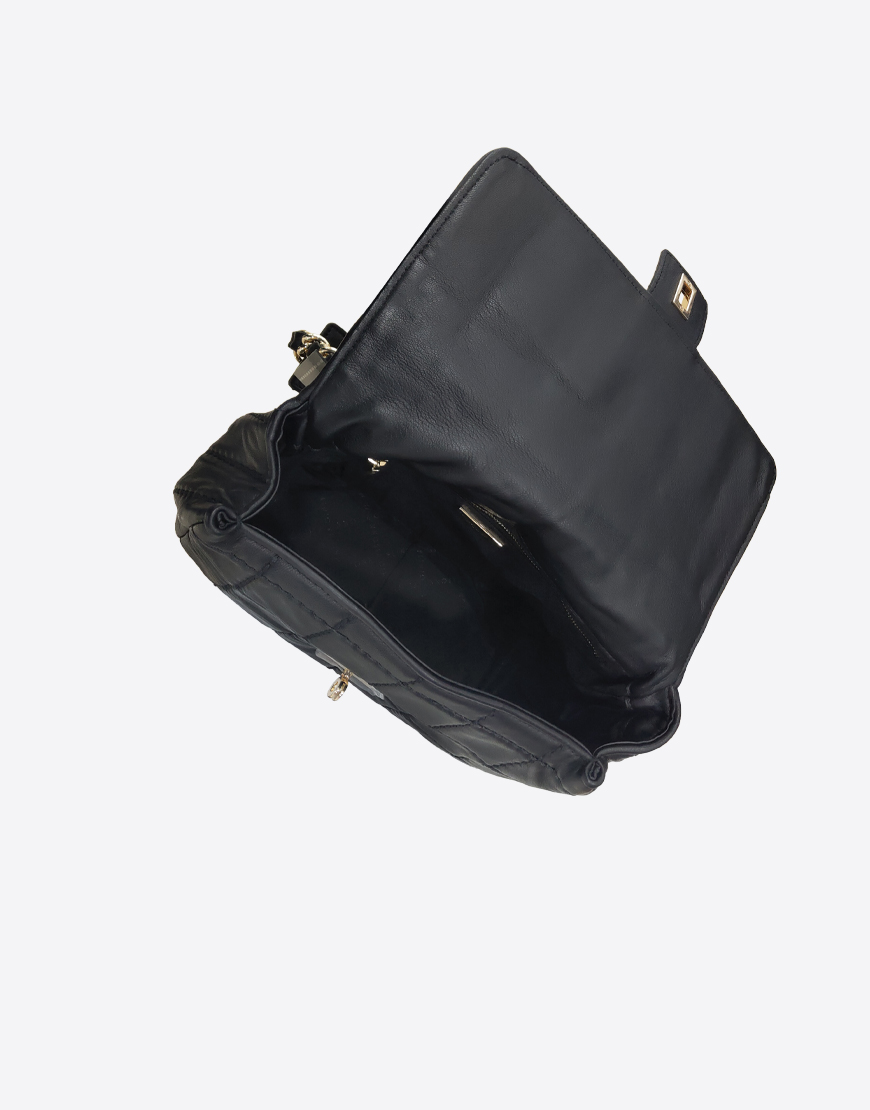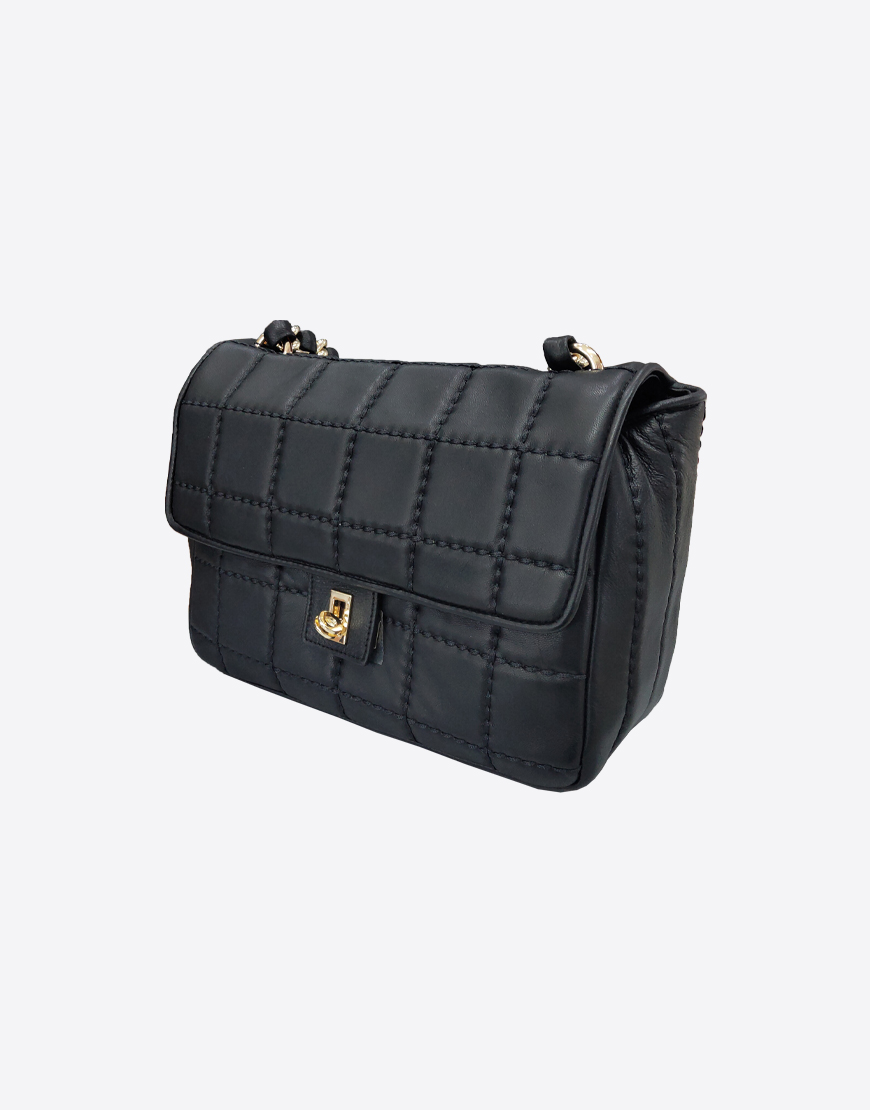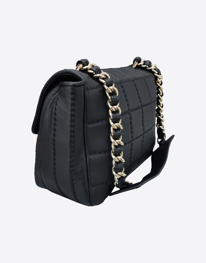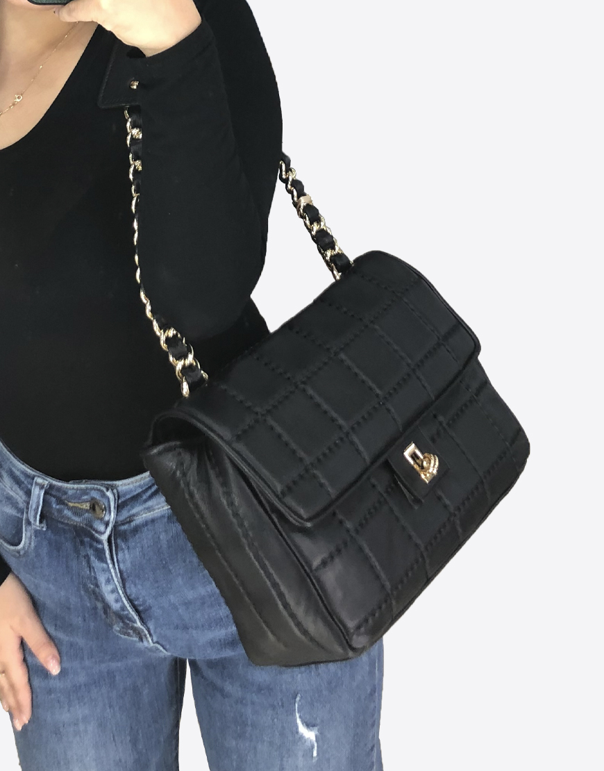 Plinio Visona сумка в чёрной стёганной коже, с золотой фурнитурой.