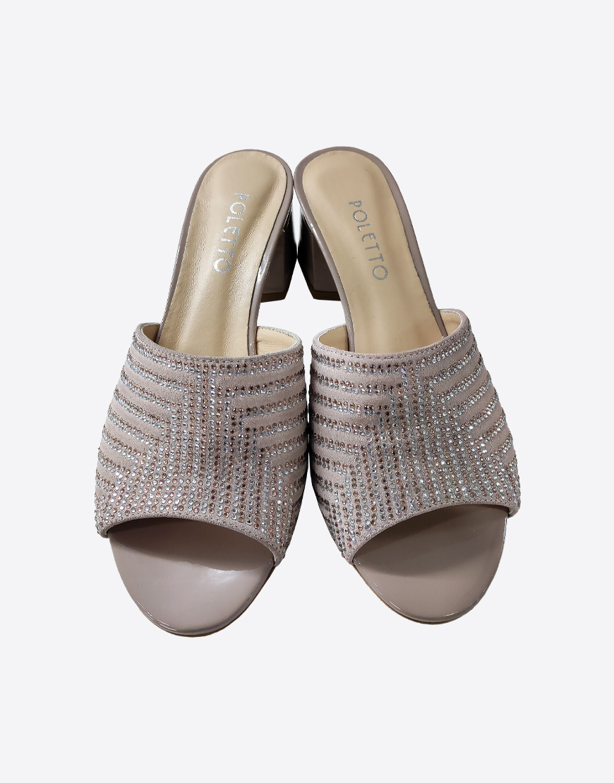 Poletto шлёпки в бежевой лазерной коже, в камнях.