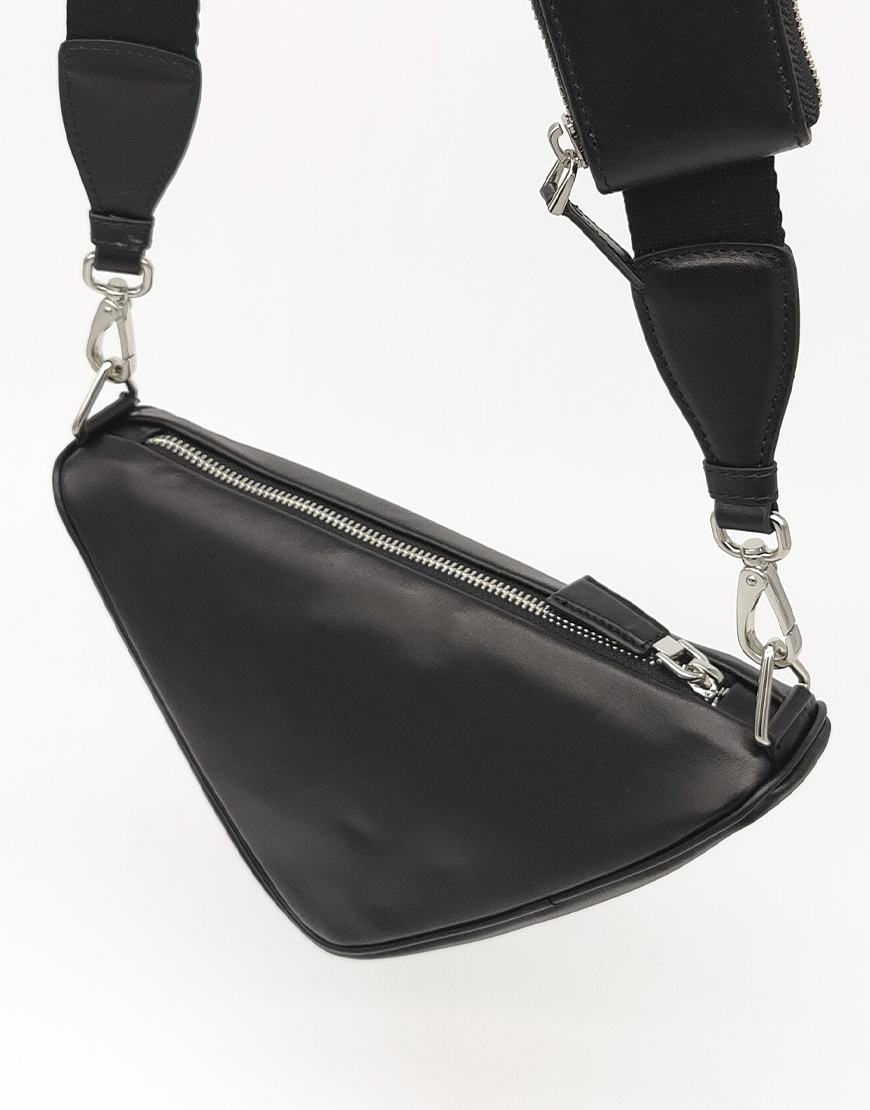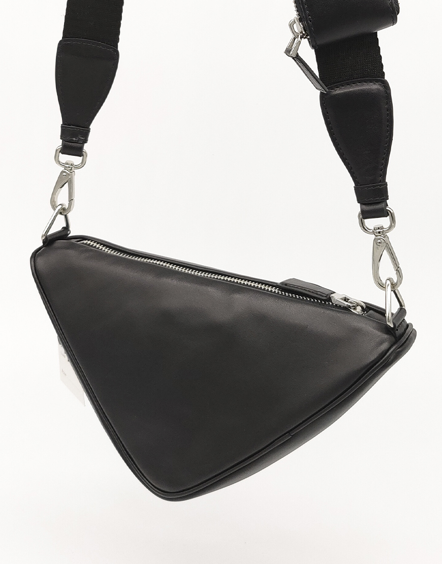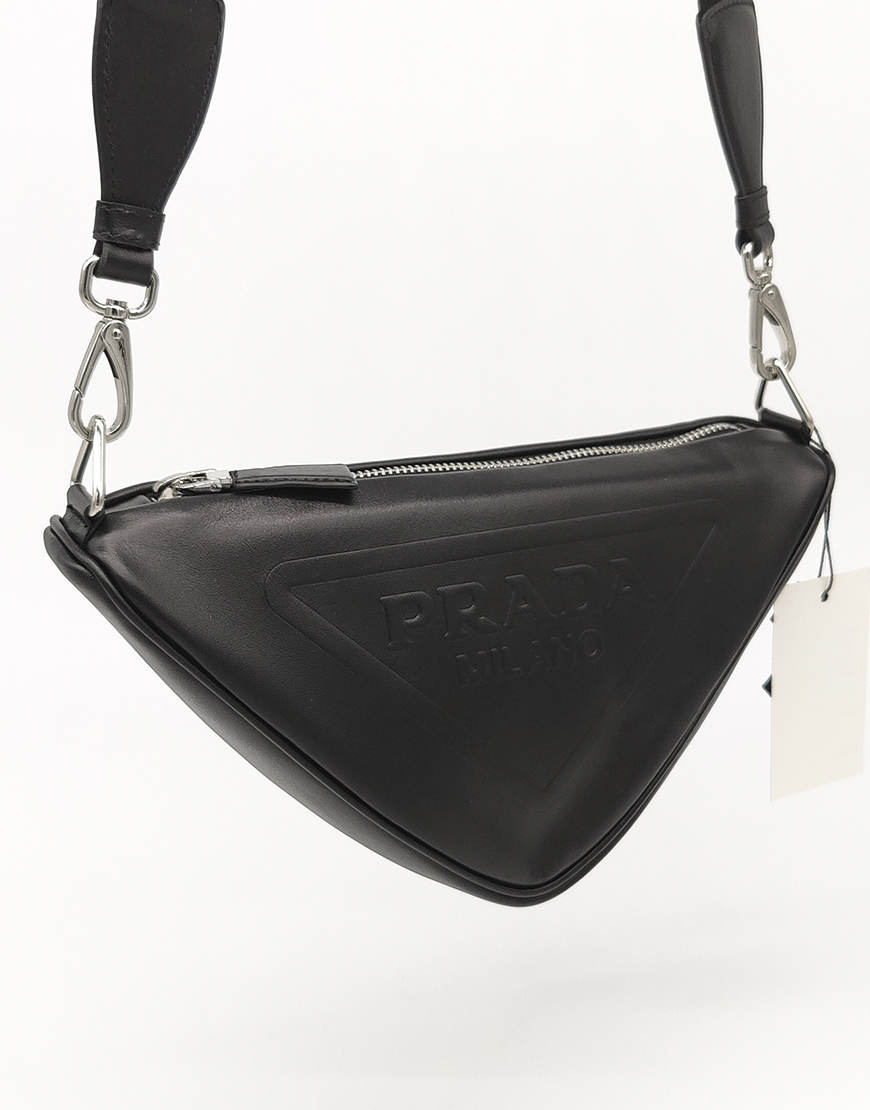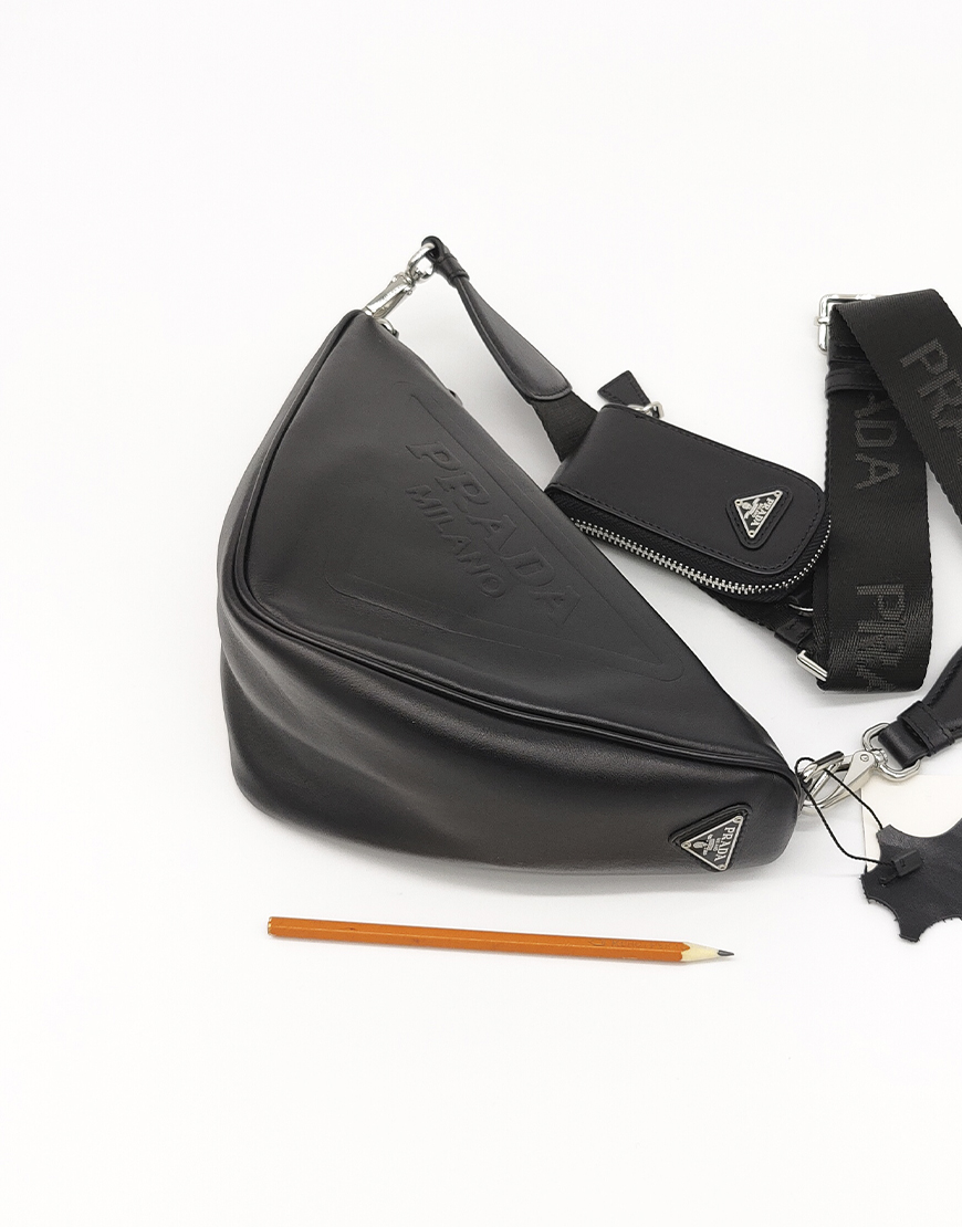 Prada сумка в чёрной коже с матерчатым ремешком.
