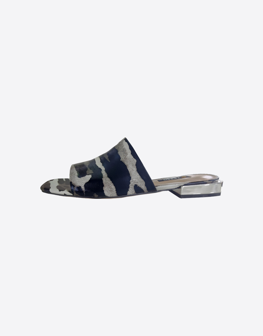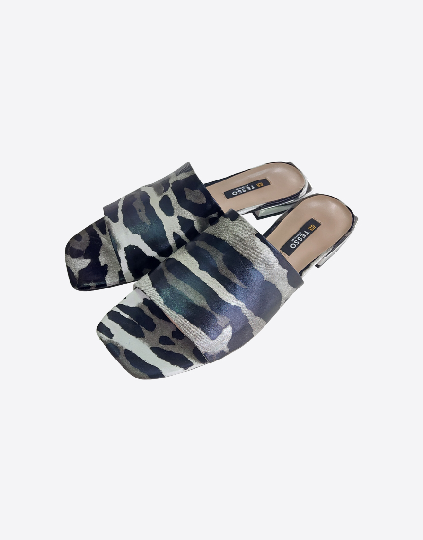 Tesso шлёпки кожаные в чёрно-белом леопарде
