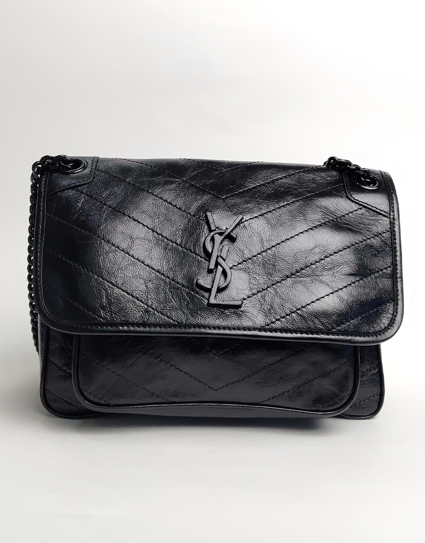 Yves Saint Laurent сумка в масляной чёрной коже, мягкая.